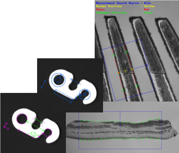 Vermessung Vermessungsaufgaben können zwischen mikroskopische Anwendungen mit Auflösungen von wenigen Mikrometern und Aufgaben mit Messgrößen von etlichen 100 Metern sein. Für komplexe Vermessungsaufgaben verfügen wir über ein reichhaltiges Sortiment an konfigurierbaren Messwerkzeugen. Diese können je nach Anforderung: Über eine Interaktive Schnittstelle zusammengestellt und konfiguriert werden. Mit einem Prüfrezept gesteuert werden. Fest in die Software eingebettet werden (wichtig für validierte Systeme). Selbstverständlich können die Werkzeuge modifiziert oder Neue erstellt werden.